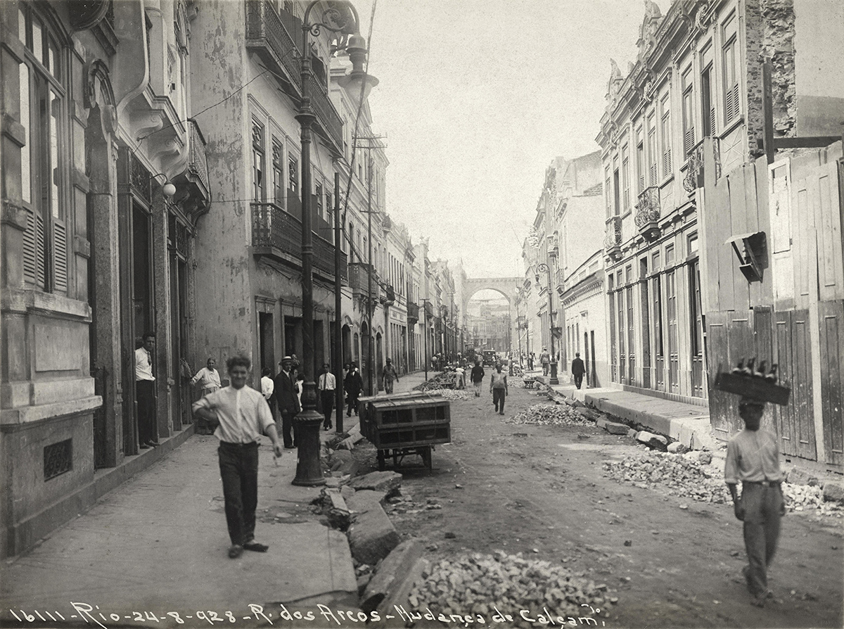 Mudança de calçamento na rua dos Arcos